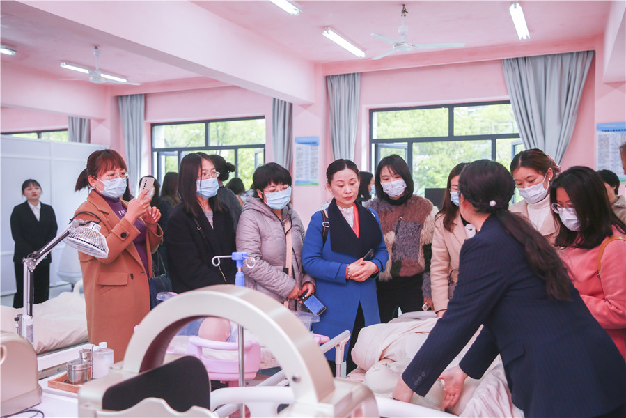 下午2時(shí),1+X幼兒照護(hù)職業(yè)技能等級(jí)證書(shū)2021年度首期師資及考評(píng)員培訓(xùn)班全體學(xué)員來(lái)到金職偉業(yè)與長(zhǎng)沙民政職業(yè)技術(shù)學(xué)院共建母嬰實(shí)訓(xùn)室進(jìn)行參觀、學(xué)習(xí)。金職偉業(yè)專(zhuān)家團(tuán)隊(duì)詳細(xì)介紹了母嬰護(hù)理實(shí)訓(xùn)室的相關(guān)設(shè)施、模型、儀器等,并一一進(jìn)行了現(xiàn)場(chǎng)演示。過(guò)程中,參觀學(xué)員就實(shí)訓(xùn)設(shè)備、專(zhuān)業(yè)實(shí)操等問(wèn)題與金職偉業(yè)專(zhuān)家進(jìn)行充分交流,為幼兒照護(hù)專(zhuān)業(yè)知識(shí)建設(shè)奠定了良好的基礎(chǔ)。