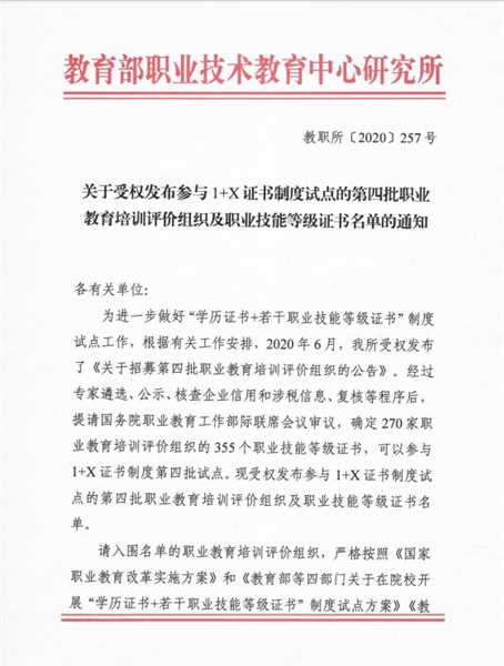 1+X 證書(即 “ 學歷證書 + 若干職業技能等級證書 ”)制度試點工作是湖南省職業教育改革的重點任務之一,有助于培養更多復合型技術技能人才,增強畢業生就業創業能力。金職偉業作為1+X第三批幼兒照護、第四批產后恢復職業教育培訓評價組織,擔綱“幼兒照護職業技能等級證書”“產后恢復職業技能等級證書”試點工作。1+X幼兒照護職業技能等級證書為面向全國孕、嬰、童相關專業職業技能的等級證書,1+X產后恢復職業技能等級證書為面向全國護理、助產、康復技術相關專業職業技能的等級證書,其認證標準專業程度高,實用性強,是未來幼兒照護、產后恢復職業技能人才證明其職業技能的有力憑證。4月15日起,各高職高專院校和應用型本科高校均可向省教育廳進行申報。