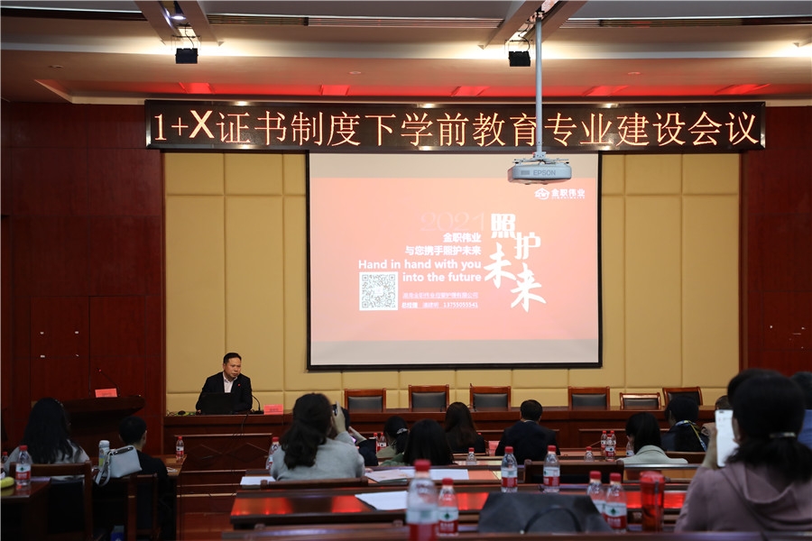 為貫徹落實《國家職業教育改革實施方案》,將1+X證書制度試點與專業建設、課程建設、教師隊伍建設等緊密結合,推進“1”和“X”的有機銜接,提升職業教育質量和學生就業能力,4月24日,于河南經貿職業學院召開“1+X證書制度下學前教育專業建設研討會”,金職偉業總經理潘建明受邀參會。