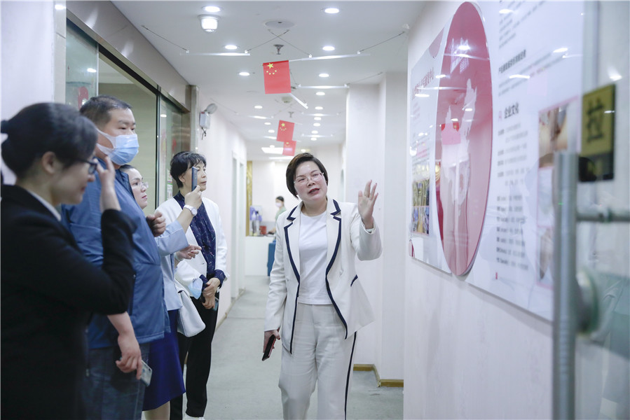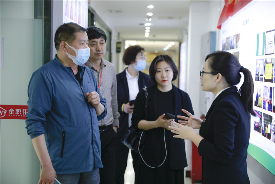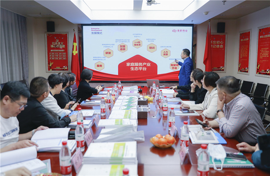 在董事長彭英等人的陪同下,中國家庭服務協會各省市會長、秘書長一行先后參觀了金職偉業運營總部、金職偉業職業培訓學校、金嬰麗人直營門店,實地考察了金職偉業開展的各項業務工作。