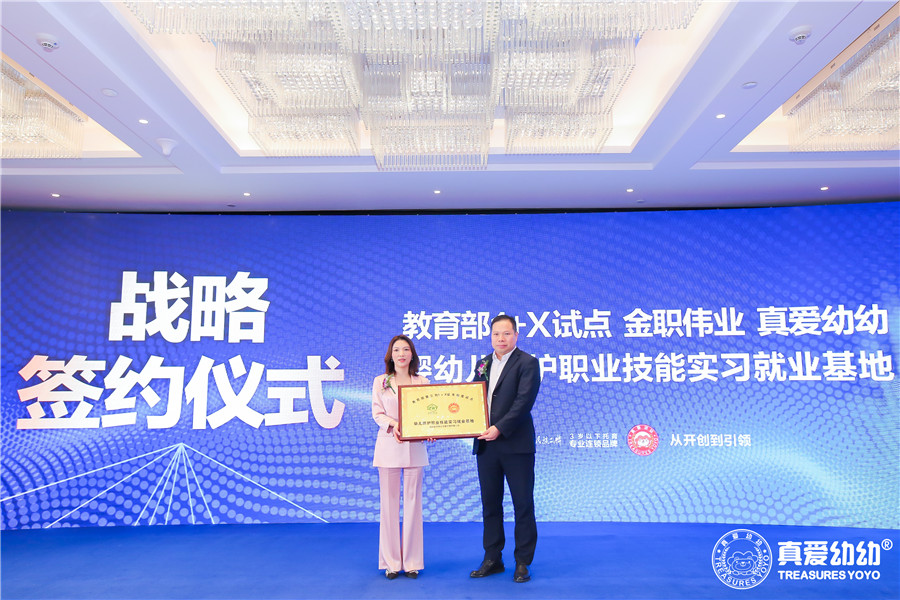 金職偉業(yè)授予真愛幼幼教育集團(tuán)“嬰幼兒照護(hù)職業(yè)技能實(shí)習(xí)就業(yè)基地”牌匾