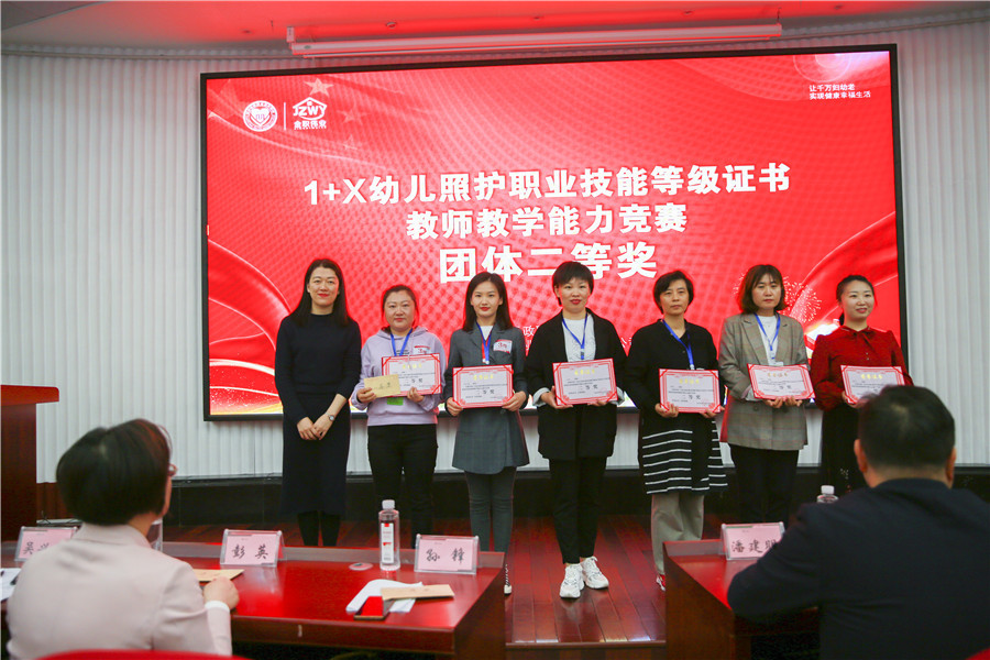 而后,進入本次1+X幼兒照護證書教師教學能力競賽的頒獎環節,以喻袁全老師為代表的第八組榮獲團體一等獎,以石艷婷、李玉老師為代表的第三組、第九組榮獲團體二等獎,以劉義青、劉小燕、柴婷老師為代表的第四組、第七組、第十二組榮獲團體三等獎;以袁紅霞、李桂紅、趙倩老師為代表的第二組、第十組、第十一組榮獲團體優勝獎,同時評選了一批優秀班干部、優秀學員。