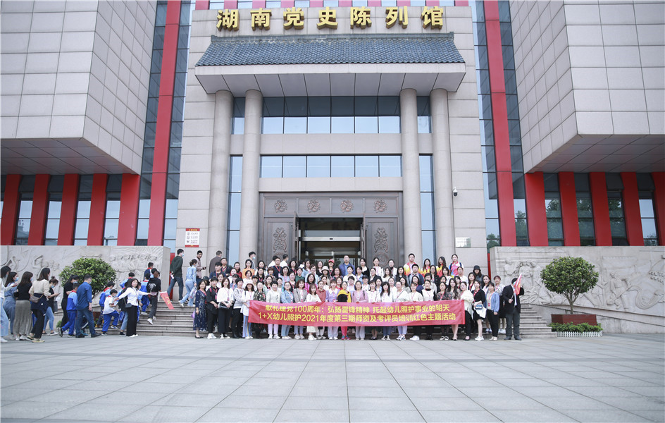 2021年是“十四五”規劃開局之年,也是中國共產黨建黨100周年。金職偉業在落實各項1+X幼兒照護事業工作中,也融入了黨史長河,汲取為民服務之力。在此次1+X幼兒照護職業技能等級證書2021年度第三期師資及考評員培訓過程中,金職偉業組織全體學員老師前往雷鋒紀念館-湖南黨史陳列館開展了“弘揚雷鋒精神 托起幼兒照護事業的明天”紅色主題活動,弘揚幼兒照護人的專業精神,積極踐行社會主義核心價值觀。學黨史、守初心、慶百年,在學習黨史中凝聚奮進力量。大家在感悟黨史中堅守信仰,牢記紅色精神,從紅色基因中汲取強大的信仰力量,全面貫徹學生中心理念,全身心投入托育托幼事業,深入推進“三教”改革,共同為職業教育添磚加瓦。