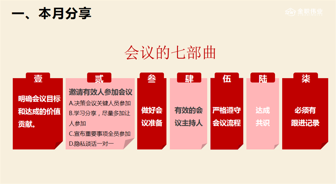 2.邀請有效人參加會議:決策會議,關鍵人員參加;學習分享,盡量多人參加;宣布重要事項,全員參加;隱私談話,一對一。
