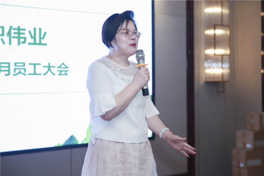 會議伊始,彭英董事長上臺致辭,細細向大家解讀了金職偉業的使命、愿景與價值觀,秉承“始終踐行讓千萬婦幼產實現幸福生活的”企業使命,向前不斷奮進。特別的是,彭董向金職小伙伴分享了“八個愛”:愛自己、愛父母、愛家人、愛團隊、愛企業、愛中國共產黨、愛民族、愛祖國,希望金職人銘記于心,成為一個對社會、對家庭有用的人。