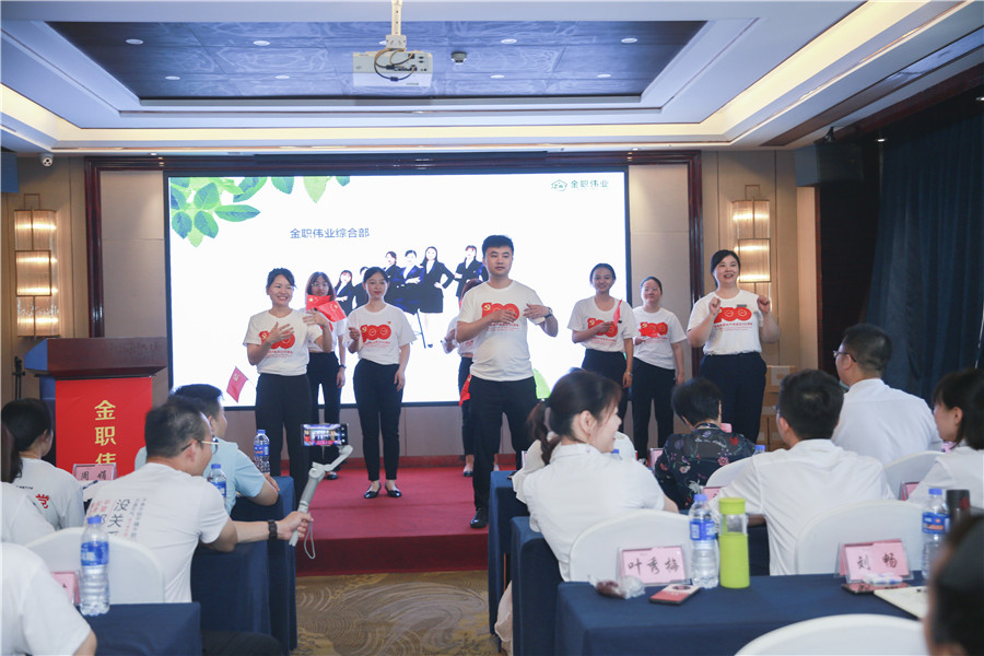 在團隊展示環節,金職的小伙伴們可謂各顯神通,各個團隊都精心準備了豐富多彩的節目,有喊口號的、有詩朗誦的、有宣誓的、有跳廣播體操的、有手語舞蹈的,甚至還有情景表演的,一次又一次的刷新了大家對于團隊展示方式的認知,精彩奪目的視覺盛宴讓臺下伙伴們掌聲不斷,連連點贊。團隊展示,展的是金職人的精神面貌和勇往直前的干勁,示的是金職人永不服輸的堅定信心和金職人積極奮進的精神。