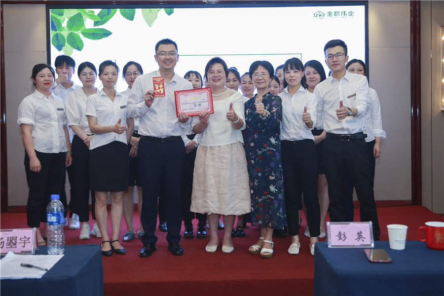 頒獎儀式結束后,金職偉業總經理助理湯曌宇上臺作總結講話,從“安全”“健康”“基礎”“拓展”幾個方面分享了近期的所見、所聞、所感。最后,他強調,“做教育者,不為過往,不為現在只為將來。金職偉業是手握著的1+X幼兒照護、產后恢復兩個國家標準的公司,我們有我們的責任和使命!雖然我們每一個人目前都在普通的崗位上奮斗,但在座的每一位都是金職最堅強的后盾,希望在座的每一位家人為了千萬婦幼老,為了中國的職業教育,也為了我們的將來,用心奮斗!”相信在金職偉業各位領導的帶領及所有同事的共同努力下,金職人將不斷創新、不斷進步、不斷提升,共創美好未來。