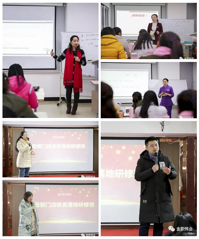 其中,師資班主要面向金職偉業職業培訓學校各分校老師展開高階提升培訓,旨在整體提高分校師資教學水平及專業能力。盈利型店長班就金嬰麗人各加盟店店長,開展了為期兩天的定制化經營管理提升培訓,旨在進一步幫扶加盟商提升管理運營能力,助推門店實現良好盈利。