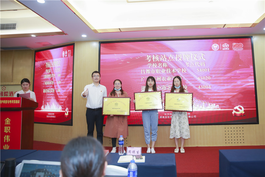 現場,金職偉業(yè)市場總監(jiān)周該生為新一批考核站點院校代表進行授牌,分別是:昌都市職業(yè)技術學校、廣西梧州農業(yè)學校、湖南省中南藝術學校、通渭縣職業(yè)中等專業(yè)學校、重慶市女子職業(yè)高級中學、重慶文化藝術職業(yè)學院、彭水苗族土家族自治縣職業(yè)教育中心。同時,還為表現優(yōu)異的優(yōu)秀班干部及優(yōu)秀學員頒發(fā)了榮譽證書。