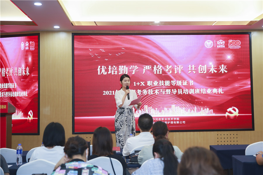 結業(yè)典禮上,金職偉業(yè)市場總監(jiān)周該生首先分享了“信念”“行為”“結果”三個關鍵詞,“一個人有什么樣的信念,就會產生什么樣的行為,最終也會出現驗證這個信念的結果。”周該生表示,未來希望各位老師能與金職偉業(yè)互幫互助、攜手并進,在回校后共同推動1+X幼兒照護、產后恢復職業(yè)技能等級證書試點工作的有序開展,為培養(yǎng)高質量的復合型技術技能人才貢獻力量。