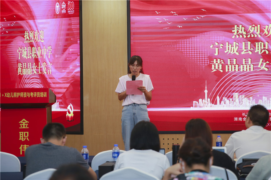 寧城縣職業(yè)中學黃晶晶老師、四川省瀘縣建筑職業(yè)中專學校幼兒保育專業(yè)系主任李艷秋老師作為學員代表分享了她們的學習感受。“在這忙碌并收獲著的三天里,金職偉業(yè)精心設計了學、觀、思、練、做、考、為一體的創(chuàng)新培訓形式,豐富充實的課程內容,既提升了各位參訓學員幼兒照護考務技術與督導的理論知識,也提高了實戰(zhàn)技能,扎實推進了每所參訓學校1+X幼兒照護證書工作的順利開展。”“本次培訓,我學到的不僅僅是關于1+X證書的相關知識,還懂得了責任、使命和擔當……培訓雖然結束了,但我們的學習不會結束,我們的追求不會停止!”