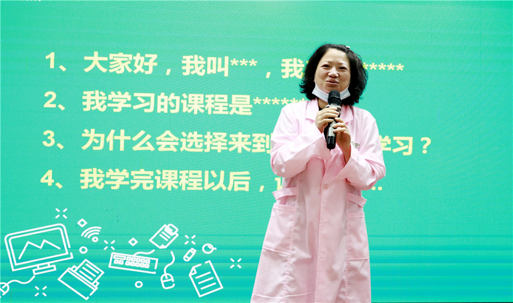 接下來,學員們紛紛上臺做自我介紹并分享學習初衷,學員中不乏全職在家帶孩子的寶媽,羅年喜和張芳就是其中的兩位,四年沒上班的羅年喜在得知保育員班招生這一信息時,便毫不猶豫地報了名:“第一次參加保育員的培訓,希望在金職偉業的學習能對我未來的事業發展有所幫助。”