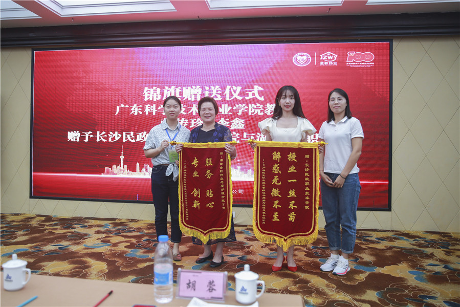 而后,學員代表廣東科學技術職業學院張傳珍老師、李鑫老師為長沙民政職業技術學院、湖南金職偉業母嬰護理有限公司贈予錦旗。錦旗鮮紅,數語寥寥,卻情深意重。同時,湖南金職偉業1+X產后恢復項目委員會為本期優秀班干部、優秀學員以及教師教學能力競賽特聘專家評委頒發證書。