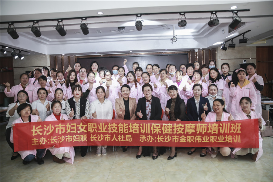 為充分發(fā)揮職業(yè)技能培訓(xùn)促進(jìn)女性創(chuàng)業(yè)就業(yè)和服務(wù)經(jīng)濟建設(shè)的積極作用,10月8日上午,由長沙市婦聯(lián)、長沙市人社局主辦,金職偉業(yè)承辦的長沙市婦女職業(yè)技能培訓(xùn)保健按摩師技能培訓(xùn)班在長沙市金職偉業(yè)職業(yè)培訓(xùn)學(xué)校開班,來自各街道的50多名婦女報名參訓(xùn)。