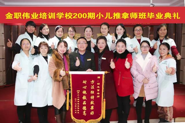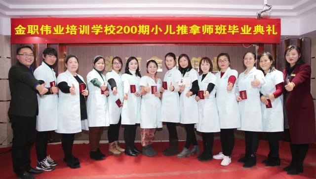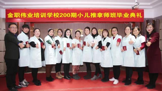 12月28日下午,金職偉業職業培訓學校第200期小兒推拿保健師班畢業典禮在金職偉業創業孵化基地舉行隆重的結業儀式。這是金職偉業學校2017年度的最后一場結業典禮,學員們也在2017年的最后半個月里收獲了豐碩的成果。
