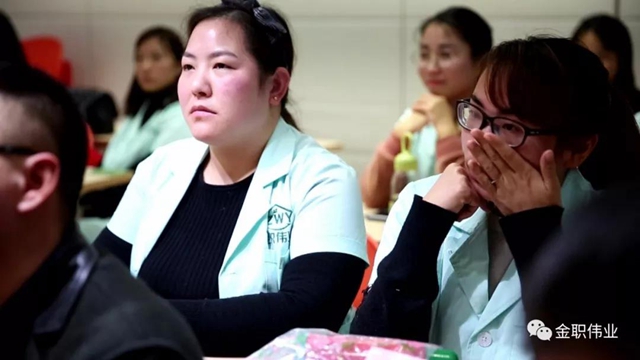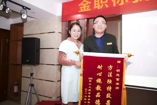學員們也用自身行動來感恩老師,她們一起給敬愛的胡老師準備了驚喜——一面錦旗,上面寫著“方法獨特效果好,耐心施教品德高”,表達了對老師的認可和對金職偉業的信任。