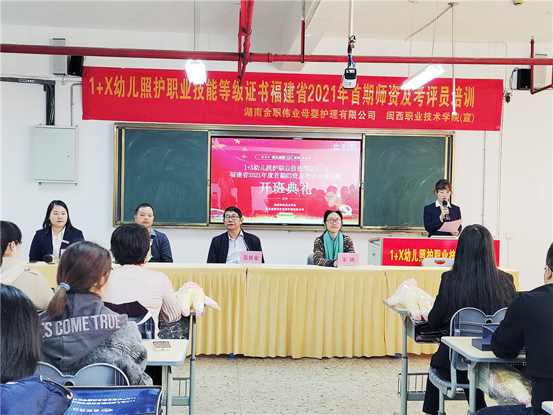 為全面落實《關于在院校實施“學歷證書+若干職業技能等級證書”制度試點方案》文件精神,高質量開展1+X幼兒照護職業技能等級證書制度試點相關工作,11月11日,1+X幼兒照護職業技能等級證書福建省2021年度首期師資及考評員培訓班于閩西職業技術學院順利拉開帷幕,數十名院校專家、老師齊聚一堂,共同學習幼兒照護專業知識及技能,助力托幼托育事業人才培養。