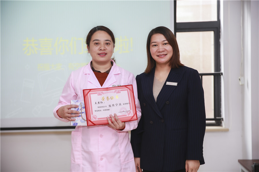 在一片掌聲中,班長廖宜平榮獲“優(yōu)秀班干部”榮譽稱號,王燕紅、周曉利榮獲“優(yōu)秀學員”稱號。“能來到金職偉業(yè)學習是一個十分正確的決定,打開了我邁進母嬰行業(yè)的大門,今后我將繼續(xù)在這個行業(yè)發(fā)展,希望能與大家一同努力,相互幫助,實現(xiàn)人生價值。”廖宜平分享道。