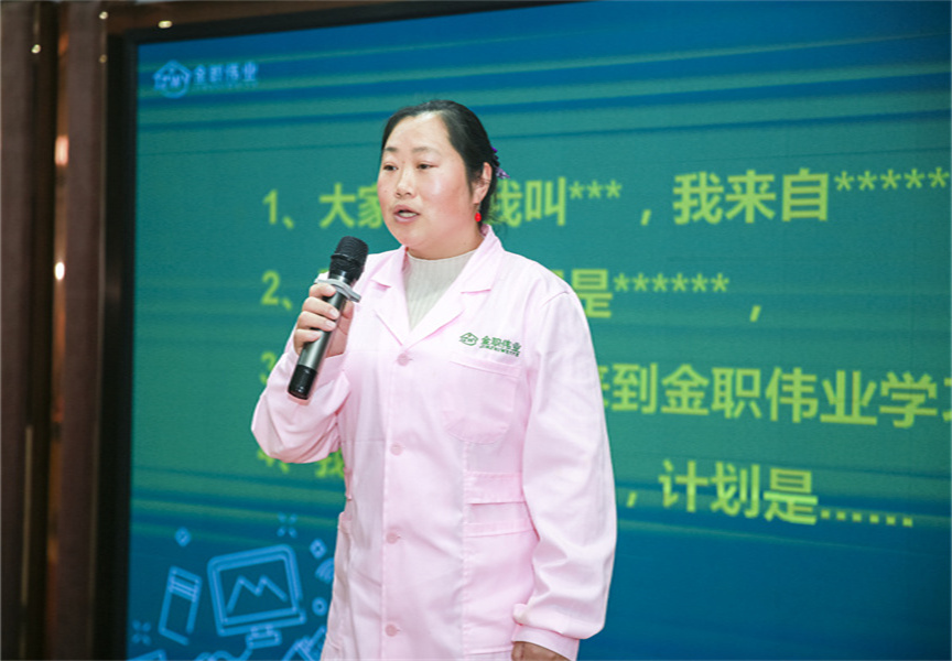 金職偉業招商市場部負責人顏明娟為學員們送去了滿滿的祝福:“學習的道路需要踏實與耐心,希望姐妹們能夠沉下心學習,在母嬰這條康莊大道上越走越遠。”