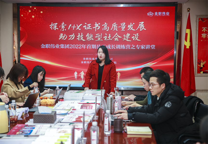 近日,教育部發(fā)布2022年工作要點,其中重點提及加強家政、養(yǎng)老、托育等民生緊缺領(lǐng)域人才培養(yǎng),積極推動技能型社會建設(shè)等內(nèi)容。為貫徹落實文件精神,探索1+X證書高質(zhì)量發(fā)展路徑,加強溝通交流相互借鑒經(jīng)驗,2月12日,金職偉業(yè)&泰康珞珈1+X證書虎年新春互訓(xùn)在金職偉業(yè)集團創(chuàng)新創(chuàng)業(yè)孵化基地火熱啟動,金職偉業(yè)各區(qū)域負(fù)責(zé)人及泰康珞珈1+X證書項目相關(guān)負(fù)責(zé)人等參訓(xùn)。