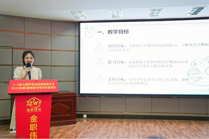 “熱烈祝賀各位老師順利完成培訓任務,對于各位老師來說是多了一張資格證書,多了一份沉甸甸的責任,但對于金職偉業來說,這意味著金職偉業的師資隊伍再次壯大,推動1+X幼兒照護職業技能等級證書的步伐更加沉穩、有力。”金職偉業院校事業部經理潘巧希望,各位老師返校后能主動作為,加大人才培養力度,不斷為行業輸送高質量復合型技術技能人才,助力我國職業教育的發展。