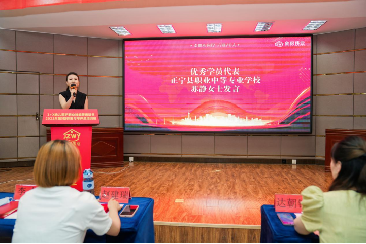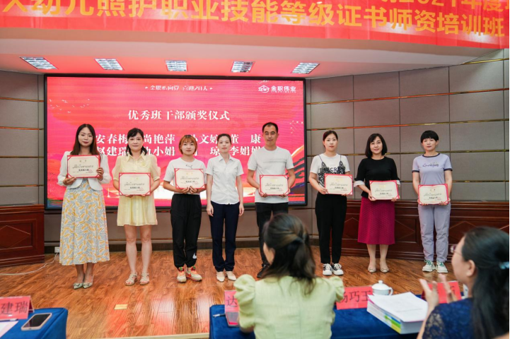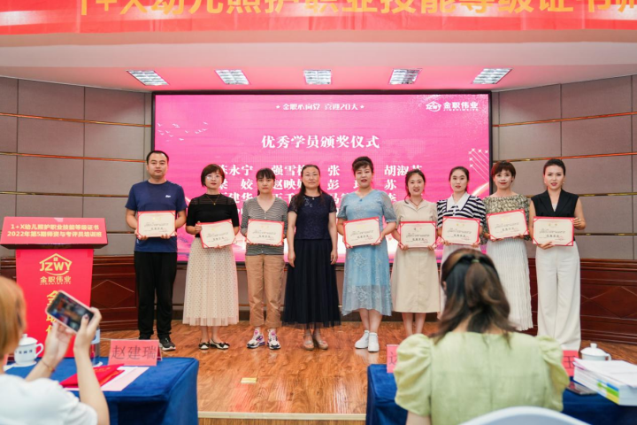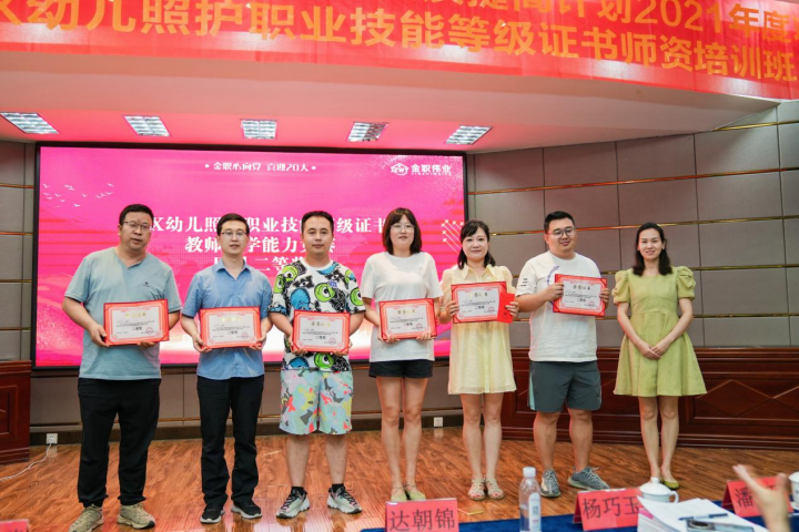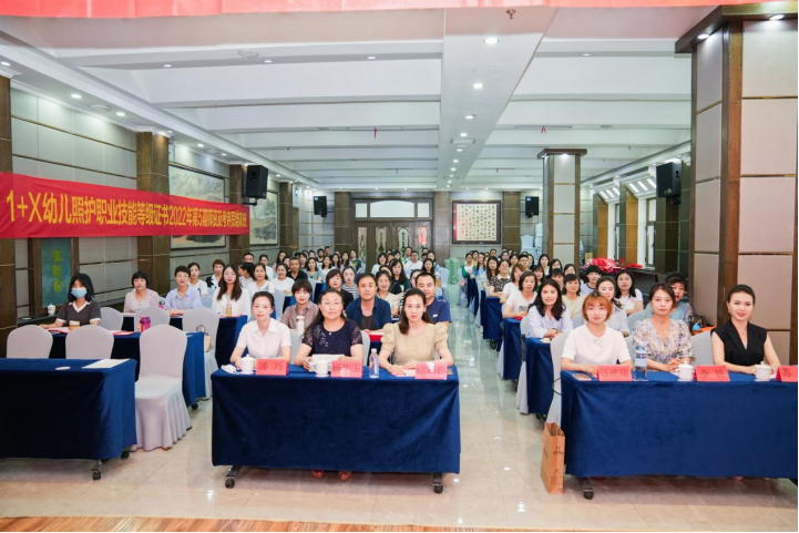 6月19日,2021年甘肅省職業院校教師素質提高計劃1+X幼兒照護職業技能等級證書師資培訓暨1+X幼兒照護職業技能等級證書2022年第5期師資及考評員培訓班圓滿落幕。蘭州現代職業學院副院長楊巧玉、甘肅衛生職業學院教研室主任達朝錦、金職偉業集團有限公司院校事業部經理潘巧等領導與全體學員共同參加。