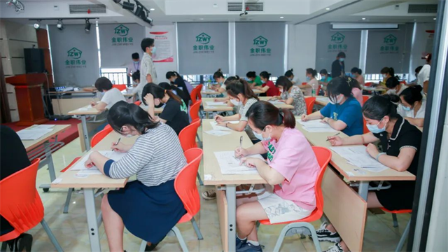 7月16日,123名想要為自己的學習畫上完美句號的考生,滿懷希望地走入金職偉業,分別參加此次中級保育師、養老護理員職業技能等級認定考試。據了解,兩項考試均分為理論與實操兩大部分。理論考試為筆試,實操考試則是考生實際操作加口述的方式。考生兩部分成績均達到60分,方能獲得證書。