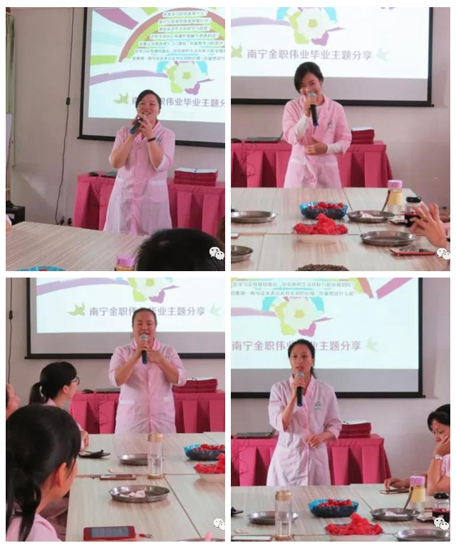 金職偉業南寧分校運營總監黃潔女士出席結業典禮并講話,“每次這個時候,我都很期待和不舍,今天很多學員跟我表達了不舍之情,‘落紅不是無情物,化作春泥更護花’,你們的認可和贊揚,是我們所有老師前進的動力!。祝福你們在母嬰服務職業道路上越走越順!”