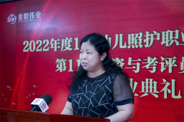 典禮伊始,金職偉業董事長助理兼品牌運營總監周娟贊揚了學員們線上學習也不松懈的好學精神,并為所有學員送上了結業祝福。