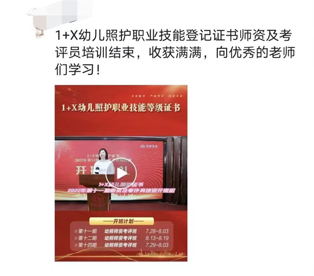 1+X幼兒照護職業技能等級證書2022年第11期師資與考評員培訓班順利收官