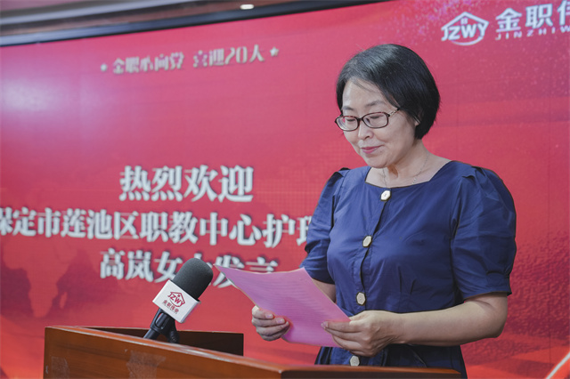 競賽結束后,河北省2021年度職業院校教師素質提高計劃國家級培訓訪學研修項目(第二階段)培訓班結業典禮正式開始。金職偉業董事長助理兼品牌運營總監周娟、院校事業部總監周該生等領導參加典禮并發表講話。
