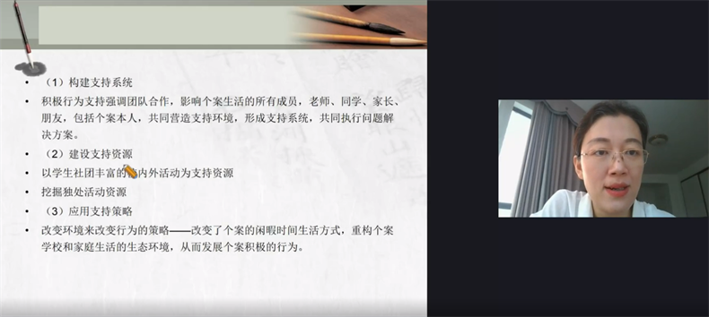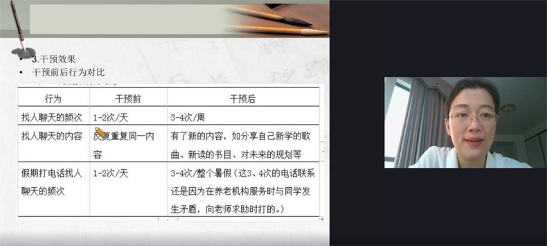 隨后,孫峰副教授重點講述了特殊群體的高等教育、職業教育實施情況與實施路徑,她用鮮活的案例,展現了特殊群體在受教育過程中可能出現的同伴交往、師生交往、學習體驗等方面的問題,并給出了詳盡、可行、具體的干預方案。“激發興趣原則是智力落后學生教育中的重要原則,要激發、培養和保持他們 的興趣愛好,增加獨處活動內容的新穎性和多樣性,給他們創造體味成功的 機會,使其對活動保持長久的注意。”