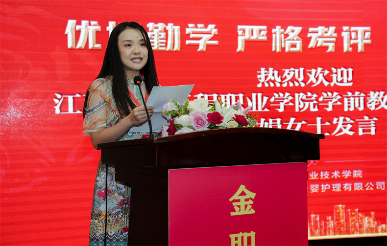 緊接著,江西環境工程職業學院學前教育教研室主任黃娟老師作為學員代表在分享學習初衷時談到,在職業教育快速發展的今天,教師的專業教育、綜合素質、業務技能都有所欠缺。“此次培訓為我們提供一個思考、學習、提高的平臺,我們應倍感珍惜,不斷夯實自己的理論基礎、轉變教學思想、促進自身發展,返校后能腳踏實地開展各項工作,演繹絢爛的教育人生。”