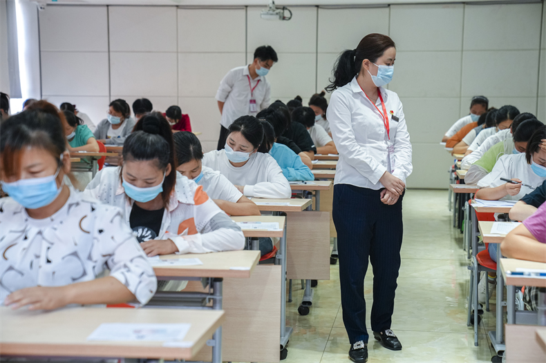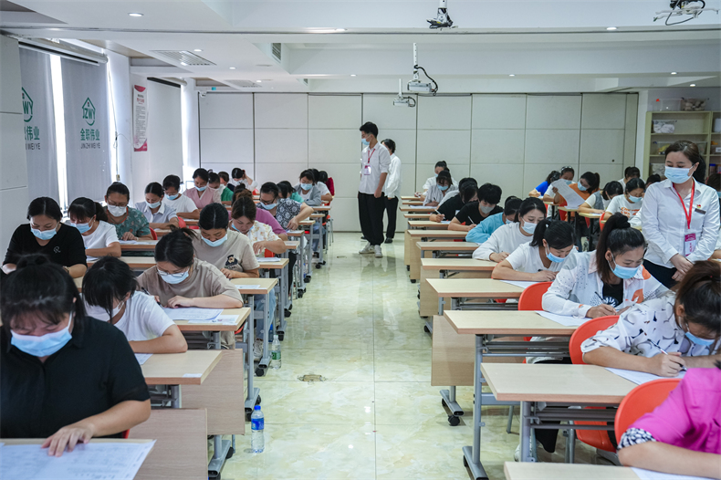 來自長沙某大型家政公司的管理人員婁女士介紹,“今天是帶員工來參加考試,當前,母嬰行業越來越熱門,同時在往規范化發展,育嬰員職業技能等級證書,已經成為了行業準入門檻,所以我們要求員工統一來考取證書,持證上崗。同時,我自己也報名參加了考試,想通過考取證書,了解更多育嬰的相關知識與技能,不但方便之后自己帶寶寶,還可以領取1200元補貼。”