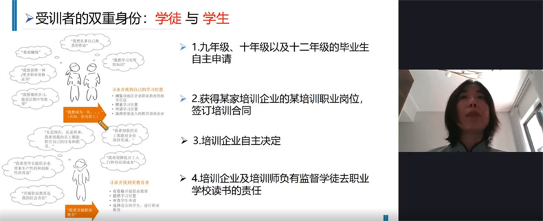賀艷芳博士畢業于華東師范大學職業技術教育學專業,在德國學習、工作十余年,曾就職于德國大型職業教育集團,長期從事職業教育研究,目前主要研究方向為比較職業教育、職業教育課程、職業教育現代學徒制。本次課堂上,賀艷芳博士對德國雙元制教育的深入闡述,也為聆聽課程的廣大職業教育園丁們打開了新思路。