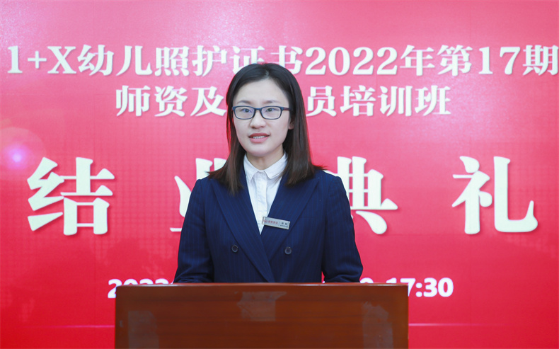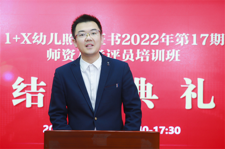 結業典禮進入尾聲,金職偉業院校事業部總監周該生表示,期待能與更多院校老師攜手,共同推進1+X證書制度試點工作的高質量發展,為幼兒照護行業培養、輸送更多高素質技能人才。