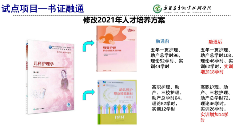 “在進行培訓前,學校應組織教師修訂護理助產專業人才培養方案,制定幼兒照護職業技能等級證書書證融通方案,將幼兒照護作為一門課程,置換護理、助產專業中兒科護理、急救護理、基礎護理學等課程。”