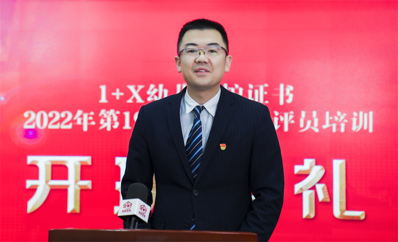 金職偉業院校事業部總監周該生為本次培訓作學習動員,他介紹,本次參訓的學員有院長、系主任、教研室負責人、一線教師,來自院校各方面的領導、老師們,都在大力支持1+X幼兒照護證書工作,“感謝各位領導與老師的信任,也希望各位老師潛心學習不斷提升自我,并為我們提供寶貴的意見和建議,祝愿大家都在本次培訓中收獲滿滿,學有所成!”