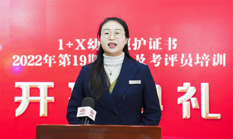 運城幼兒師范高等專科學校早期教育系嬰幼兒托育服務與管理系主任段麗紅作為學員代表發言,她介紹了學校1+X幼兒照護證書師資及考評員培訓與學生考評情況,并提到,“進行專業、系統的培訓和學習,能進一步了解1+X證書試點工作推進的路徑和方向,熟悉幼兒照護考評的流程和技術,能推動和提高我校1+X證書考評工作的規范性和通過率,為學生的專業學習和將來就業提供更多指導與幫助。”