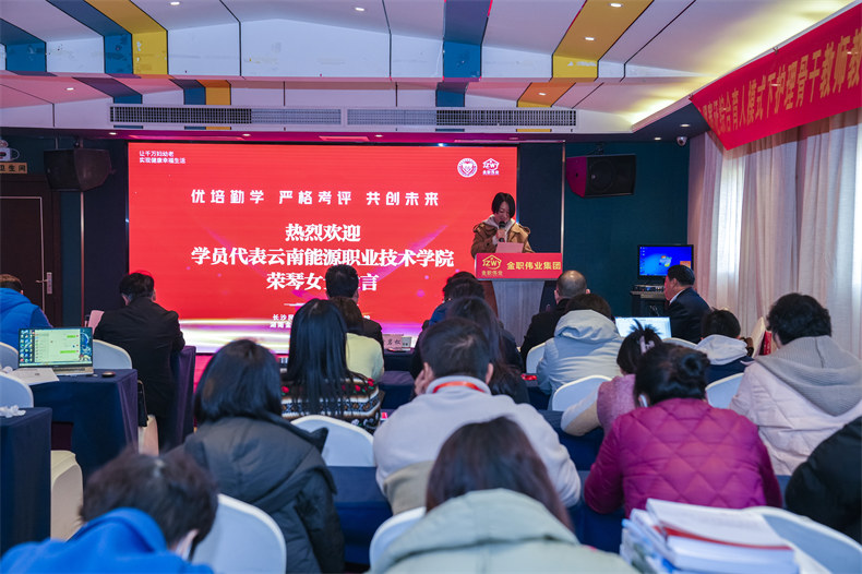 隨后,云南能源職業技術學院嬰幼兒托育服務與管理專業帶頭人、學校工會主席榮琴作為學員代表莊重表示,為切實完成學習培訓任務,她們將做到以下四點:第一,珍惜機會,勤奮學習,按要求完成培訓任務;第二,相互交流,取長補短,營造濃厚的學習氛圍;第三,自覺遵守各項學習紀律,服從各項安排;第四,學用結合,將培訓所學運用到教學實踐中,努力提高教學質量。