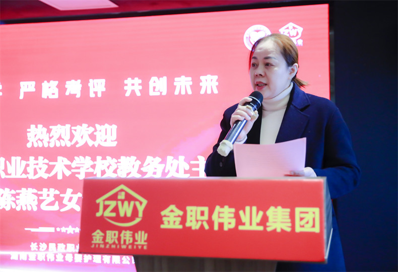 典禮伊始,長沙市衛健委人口家庭處謝靖處長進行致辭。他主要分享了以下三點內容:一是感謝國家好政策,托育行業迎來了發展的春天;二是面對市場強烈的托育服務需求,托育行業大有可為,從事幼兒保育、托育服務與管理等相關專業的老師與學生都將大有作為;三是期盼所有老師能夠知行合一、學以致用,順利推進學校1+X幼兒照護職業技能等級證書工作的開展。