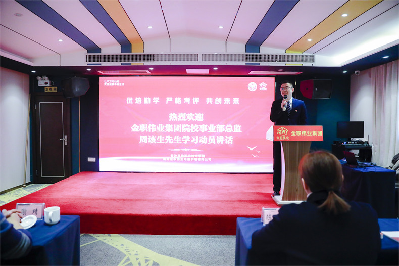 最后,金職偉業院校事業部總監周該生作培訓動員。他要求,全體參培人員要努力聽課、主動思考,深刻領會和掌握各位專家授課的內容、方法,把學到的知識應用到工作實踐中去,確保學有所思、學有所悟、學有所成。“希望各位老師能集中心思學習,積極參與討論和互動,確保培訓取得實效。”