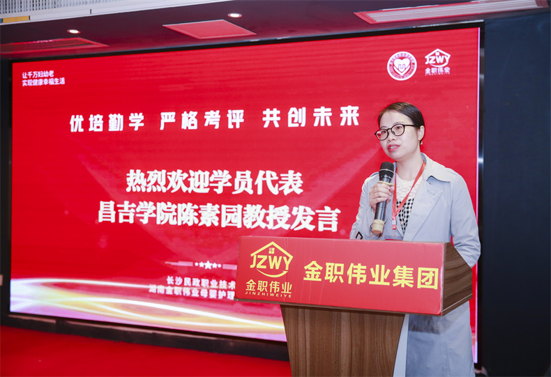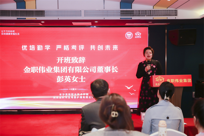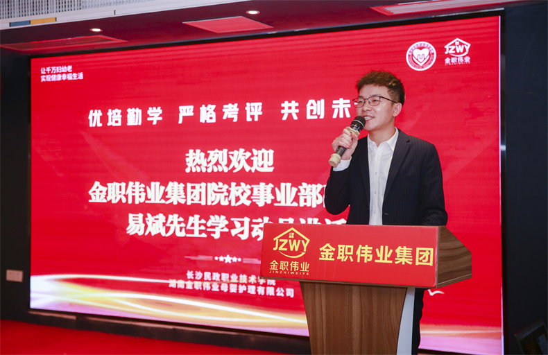 典禮伊始,長(zhǎng)沙市衛(wèi)健委人口家庭處處長(zhǎng)謝靖?jìng)鬟f了國(guó)家衛(wèi)生健康委人口家庭司調(diào)研組的要求:一是根據(jù)當(dāng)?shù)厍闆r,大力發(fā)展普惠托育服務(wù)。成立省、市級(jí)嬰幼兒照護(hù)服務(wù)指導(dǎo)中心,加強(qiáng)各地托育工作指導(dǎo)。二是充分利用全國(guó)托育人員培訓(xùn)信息管理系統(tǒng),開展托育人員業(yè)務(wù)培訓(xùn)。三是注重醫(yī)育結(jié)合,發(fā)揮婦幼保健院、兒童醫(yī)院等單位在醫(yī)學(xué)防治與保健方面的優(yōu)勢(shì),助力托育服務(wù)工作高質(zhì)量發(fā)展。緊接著,金職偉業(yè)董事彭英分享了三點(diǎn)內(nèi)容要求:第一,緊跟職教好政策,金職偉業(yè)1+X證書取得實(shí)效。據(jù)統(tǒng)計(jì),金職偉業(yè)已培訓(xùn)1+X幼兒照護(hù)職業(yè)技能等級(jí)證書師資11109名,累計(jì)在全國(guó)建設(shè)1255個(gè)考核點(diǎn),考核人數(shù)達(dá)21.9萬(wàn)。第二,要積極構(gòu)建產(chǎn)教融合共同體。至2022年,金職偉業(yè)啟動(dòng)總計(jì)6千平方“產(chǎn)學(xué)研”多位一體家庭服務(wù)產(chǎn)業(yè)學(xué)院,牽頭搭建實(shí)習(xí)就業(yè)聯(lián)盟,創(chuàng)立線上公益講座,助力提升教師隊(duì)伍建設(shè)水平。第三,深化崗課賽證,共育百萬(wàn)托育人才。