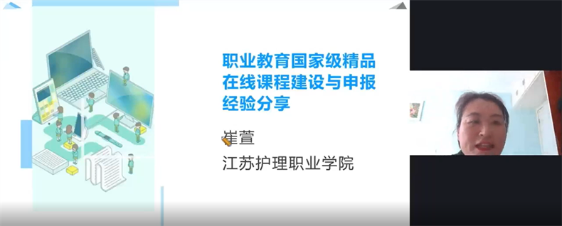 建設(shè)職業(yè)教育國(guó)家級(jí)精品在線課程是推動(dòng)職業(yè)教育教學(xué)改革,提高職業(yè)教育教學(xué)質(zhì)量的有效途徑。為助力院校打造國(guó)家級(jí)精品在線課程,崔萱副教授率先以學(xué)校建設(shè)的《助產(chǎn)綜合實(shí)訓(xùn)》國(guó)家級(jí)精品在線課程為例,從選題、課程目標(biāo)、資源建設(shè)、評(píng)價(jià)與考核、課后交流等環(huán)節(jié)作了經(jīng)驗(yàn)分享。