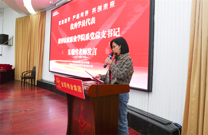 洛川縣職業中等專業學校教學處教學主任雷清雅老師作為優秀班干部代表發言,她對金職偉業的細心服務致以由衷的感謝,并對授課老師的專業水準表示充分肯定,“希望在今后,能與各位專家老師一起夯實自身專業能力,為考務技術與督導工作高質量開展奠定基礎,助力學生成長成才。”