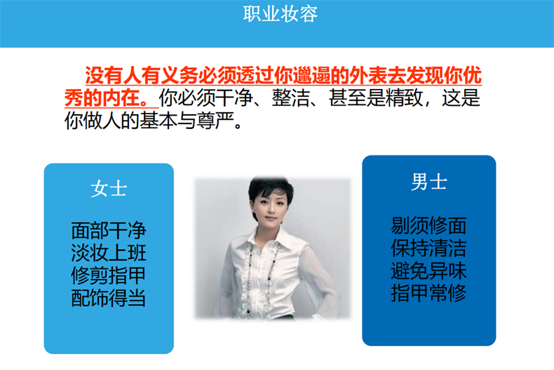 “教師是傳播人類文明,開啟人類智慧,塑造人類靈魂的工程師,良好的職業(yè)形象不僅是個(gè)人修養(yǎng)的體現(xiàn),更能為學(xué)生樹立良好的榜樣。”為助力各院校老師職業(yè)形象塑造,吳曄老師就“職業(yè)儀容、職業(yè)著裝、職業(yè)體態(tài)”三方面進(jìn)行了詳細(xì)講解。