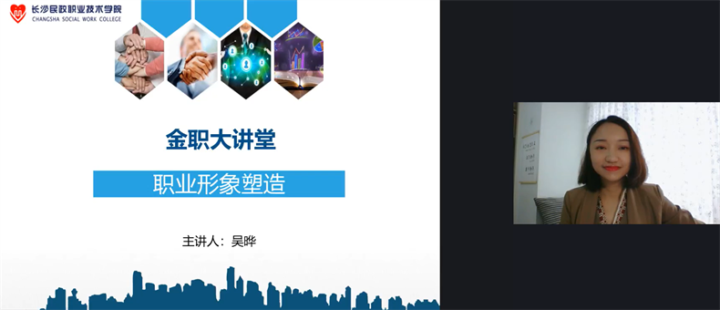 5月6日,金職大講堂第73講正式開講,課程邀請(qǐng)到長(zhǎng)沙民政職業(yè)技術(shù)學(xué)院吳曄老師,作《職業(yè)形象塑造》主題授課。