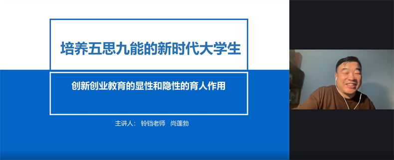 “雙創(chuàng)教育在我國現(xiàn)代化建設全局中的處于核心地位,縱深推進大眾創(chuàng)業(yè)萬眾創(chuàng)新是深入實施創(chuàng)新驅動發(fā)展戰(zhàn)略的重要支撐,也是構建高校育人體系的重要環(huán)節(jié)。”課上,尚蓬勃老師就“五種思維、九種能力”分析了院校創(chuàng)新創(chuàng)業(yè)教育的對人才培養(yǎng)的積極作用。