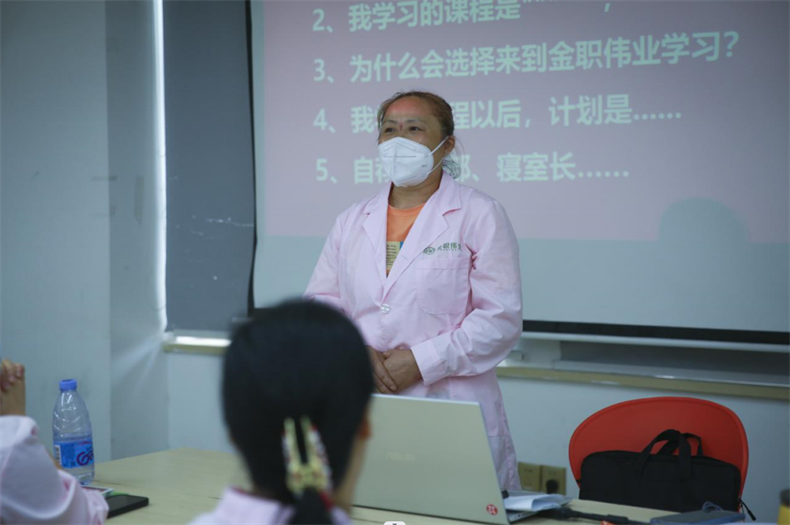 來自株洲的學員賴艷清對金職偉業的招生老師很認可,“我微信加了五六個培訓學校的老師,只有金職偉業譚老師一直不厭其煩的回答我的問題,我感受到這就是好的服務,于是把其他的都刪除了,來到金職偉業學習。學到技能后我能夠通過勞動改善生活,也能為父母、公公婆婆提供科學、專業的照料。”
