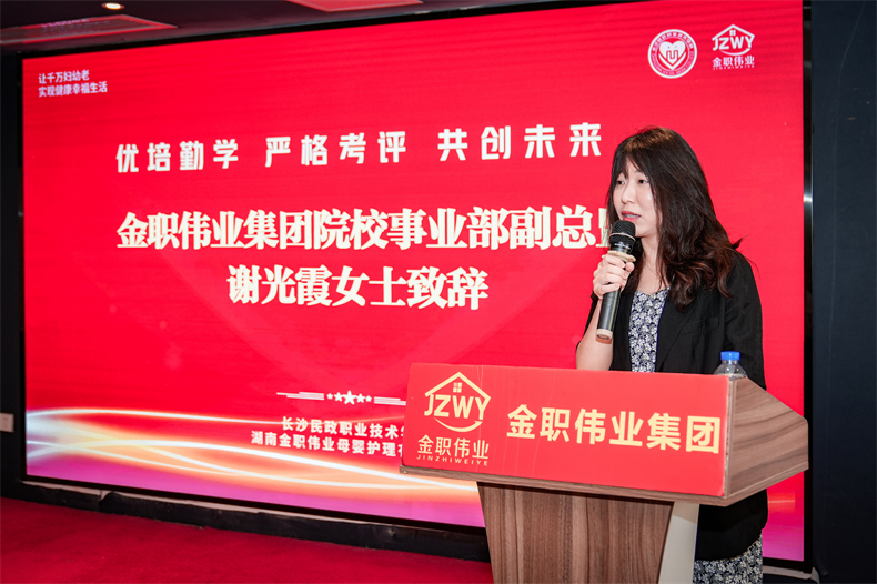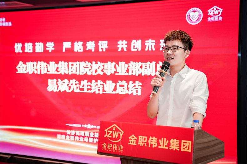 結(jié)業(yè)典禮最后,金職偉業(yè)院校事業(yè)部副總監(jiān)易斌作總結(jié)發(fā)言,他提到,金職偉業(yè)多年來深耕職業(yè)教育,積極助力“三教”改革,在教師方面,被遴選為第二批職業(yè)教育教師企業(yè)實(shí)踐基地,并成功申報(bào)8個(gè)教師企業(yè)實(shí)踐項(xiàng)目;教法方面,積極開發(fā)智能仿真幼兒、嬰幼兒照護(hù)混合現(xiàn)實(shí)訓(xùn)練系統(tǒng)(MR)等智慧職教產(chǎn)品;教材方面,聚合各方專家學(xué)者,對標(biāo)國家規(guī)劃教材標(biāo)準(zhǔn),建設(shè)課證融通教材,并融入行業(yè)新工藝、新規(guī)范,以賦能書證融通。“未來,金職偉業(yè)也將牢記使命,凝心聚力,全面協(xié)助各院校試點(diǎn)工作的開展,為職業(yè)教育高速發(fā)展的明天積蓄力量。”